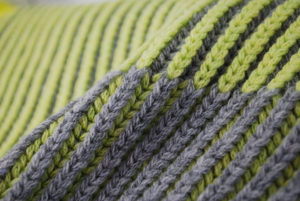 今回は下記の取り扱い素材でダブルフェイスリーバーシブル切替カラー編みをお届けしました~