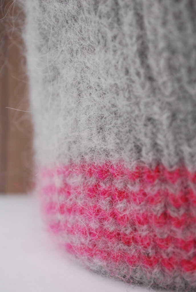 毛足のあるモヘアアルパカ素材に、モヘア混のFIVE LINEを入れました。